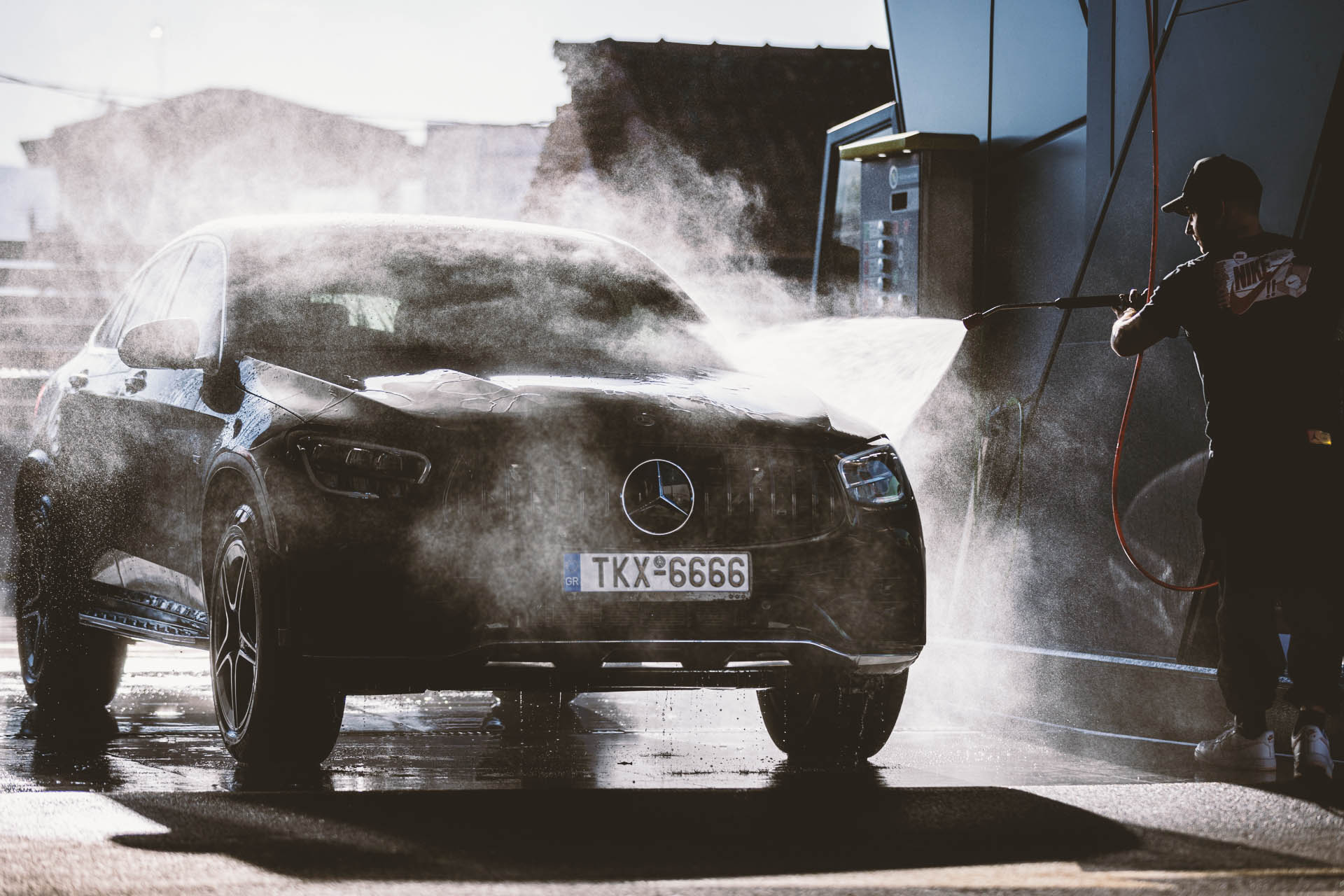 Τελικό ξέβγαλμα με απιονισμένο νερό και γυαλιστικό για αστραφτερό αποτέλεσμα. Το αυτοκίνητο θα στεγνώσει χωρίς τη χρήση δέρματος ή πανιών, χωρίς να δημιουργηθούν κηλίδες χάρη στην εξαιρετική ποιότητα του απιονισμένου νερού.